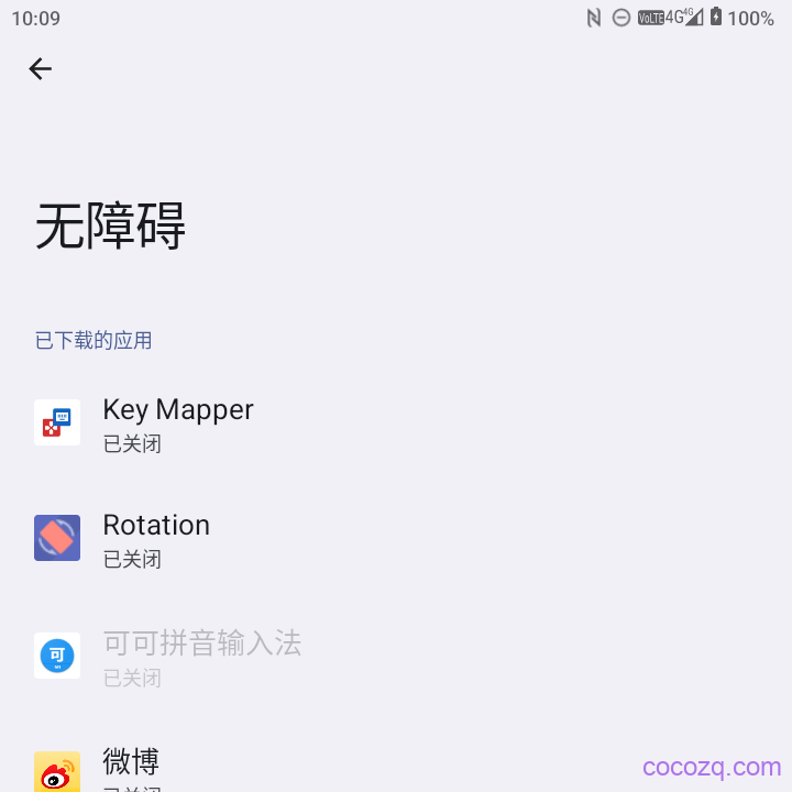 可可拼音输入法的一些功能比如使用I键定位编辑框或者自动发送会使用到无障碍服务,在高版本Android系统中你会发现